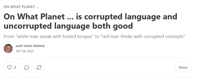 On What Planet ... is corrupted language and uncorrupted language both good ... beginning to look like Planet Earth: