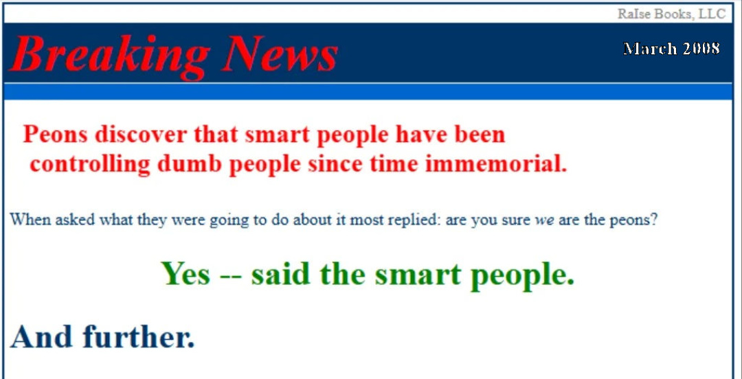 The countries “intellectuals” told young people that a college degree was their way to the American dream of a life of gainful employment and a life much like that of many of their parents—with this big lie: kids in America—the greatest non-CINO Capitalistic Country of all time (this is the lie part)--will always find an American Society within which they can do better than their parents.